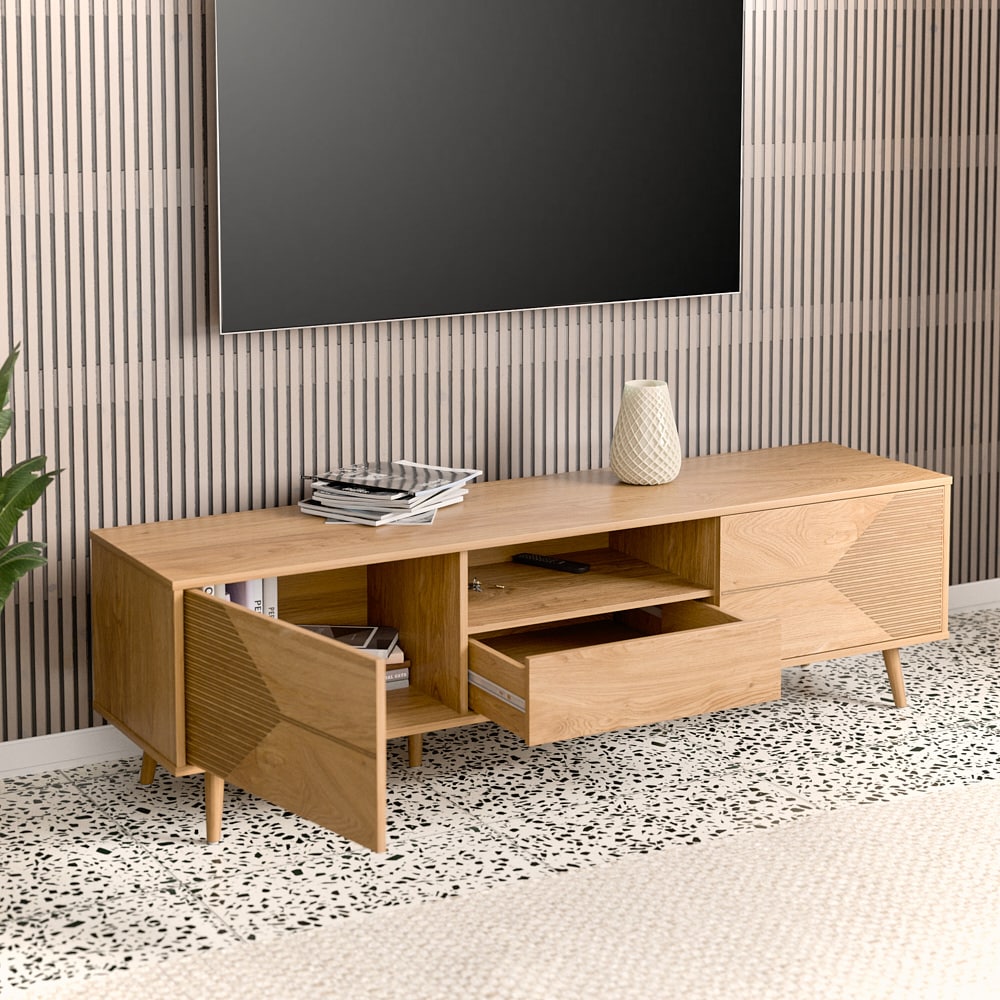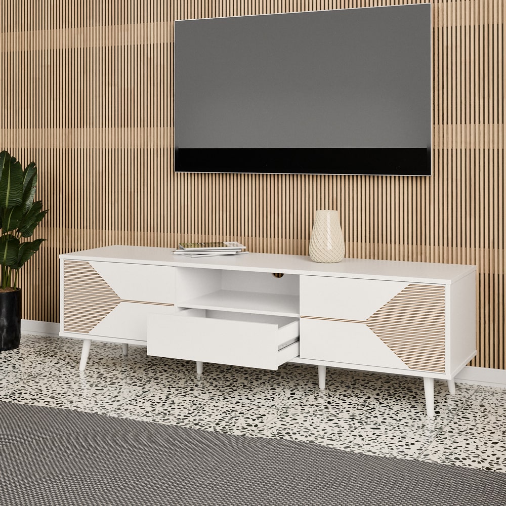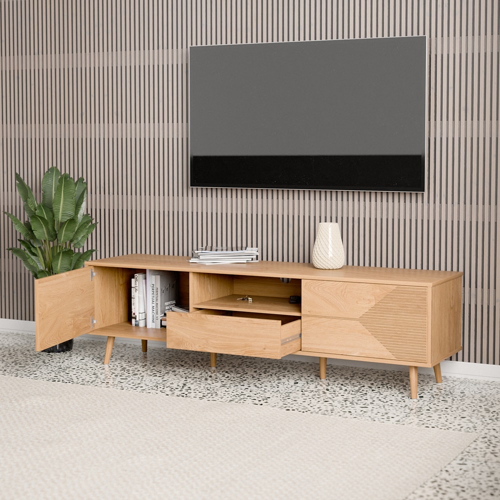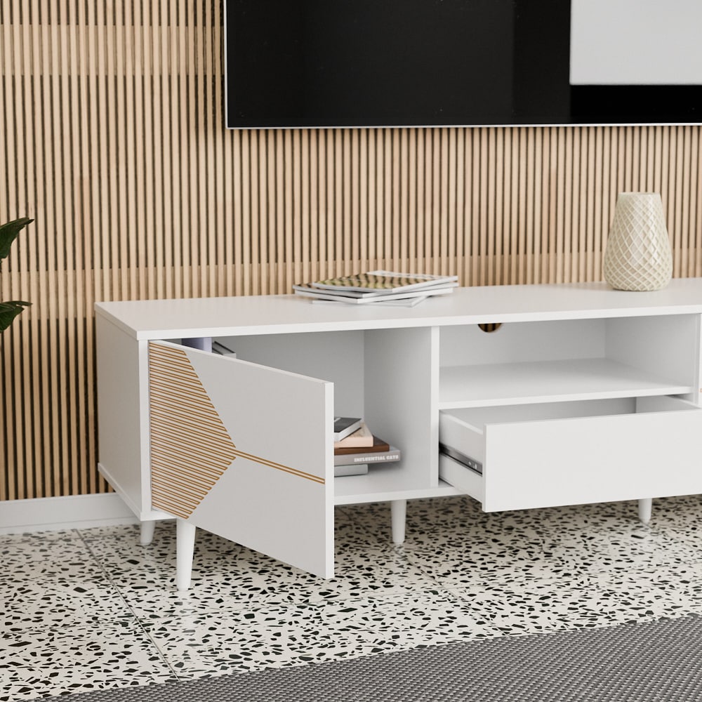 המזנון מכיל שני תאים גדולים מגירה אמצעית ומדף