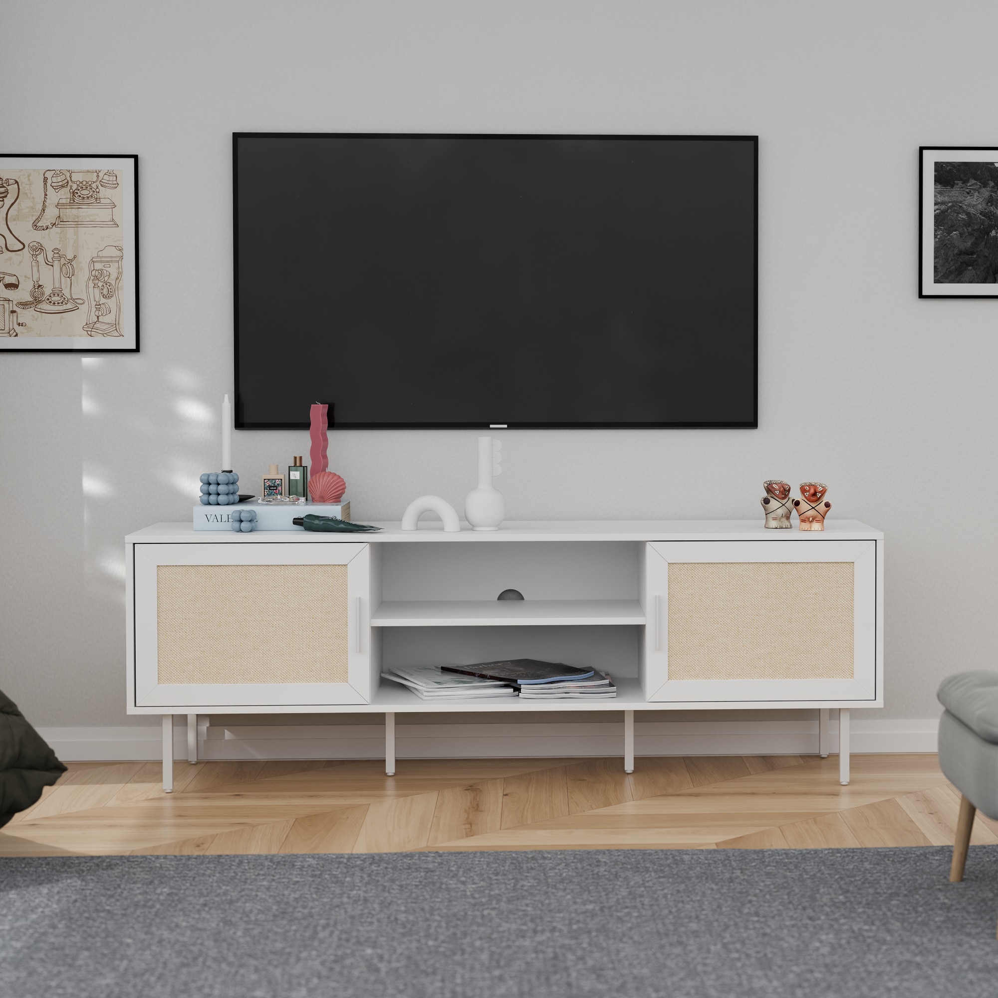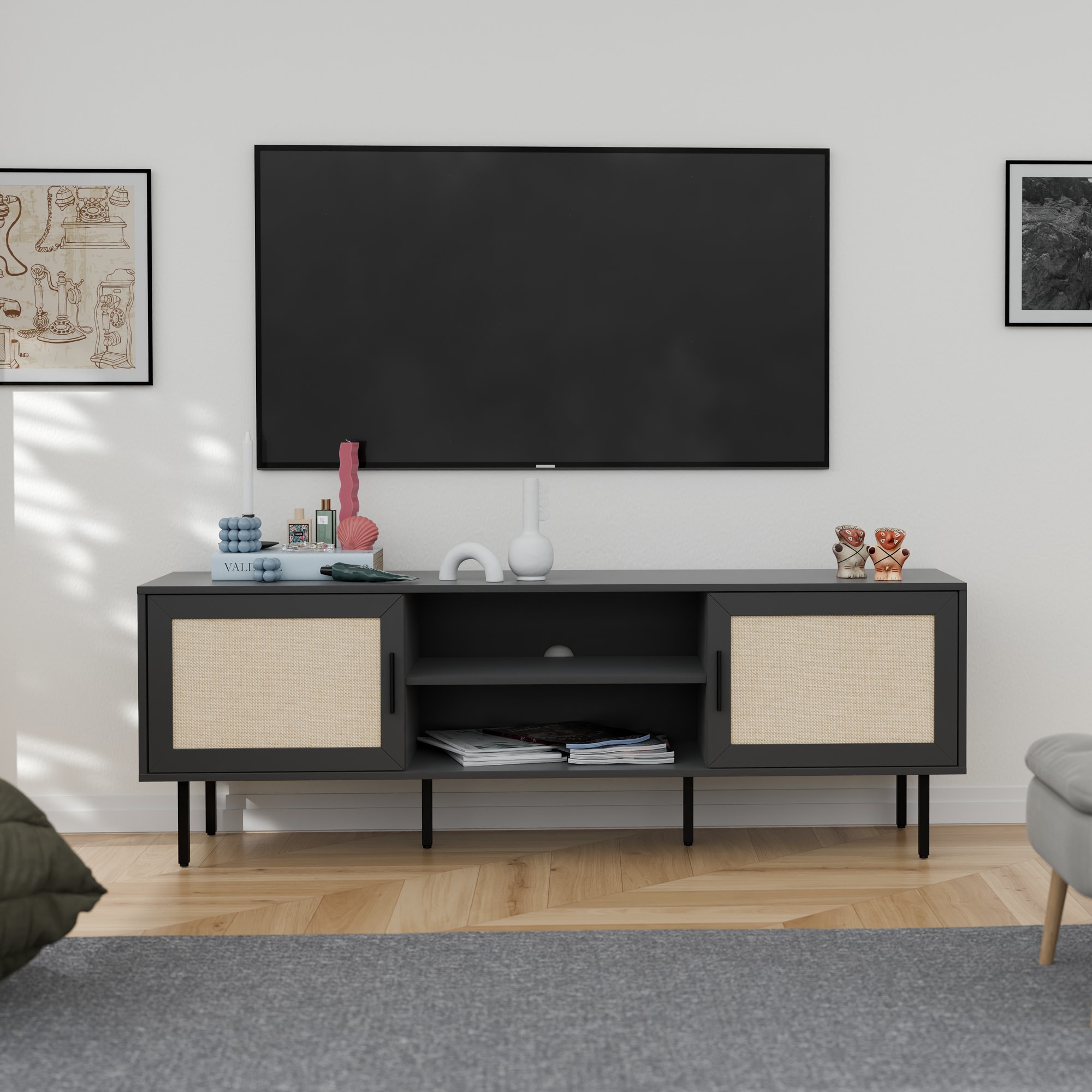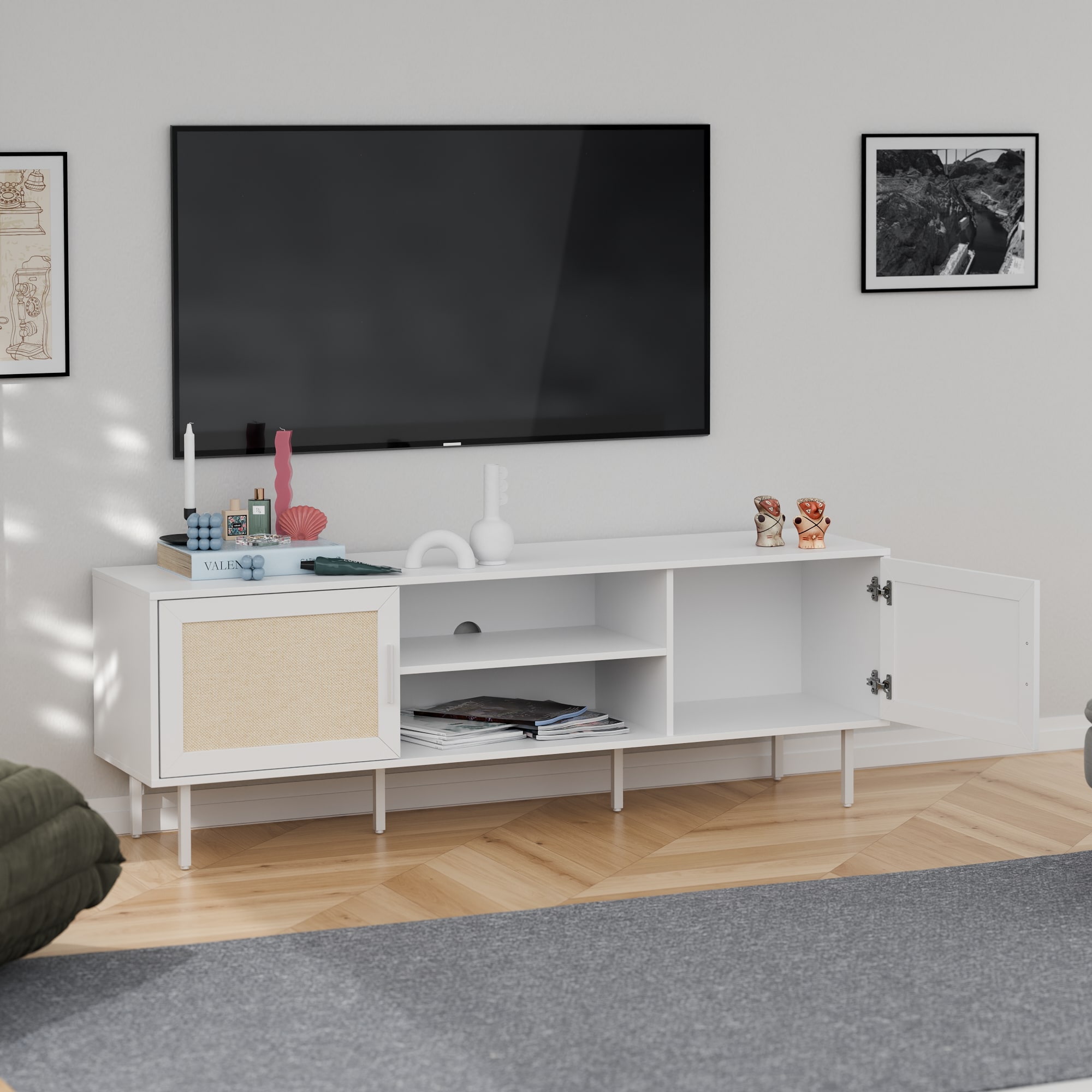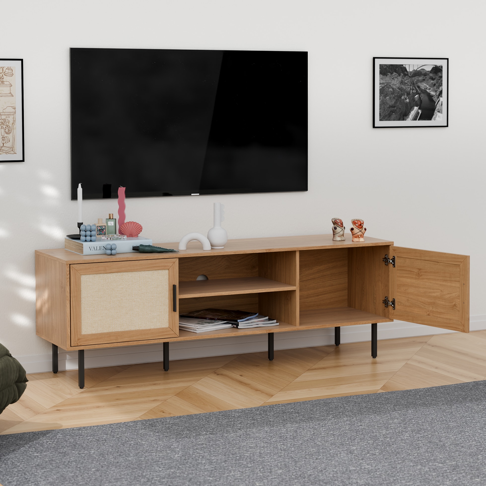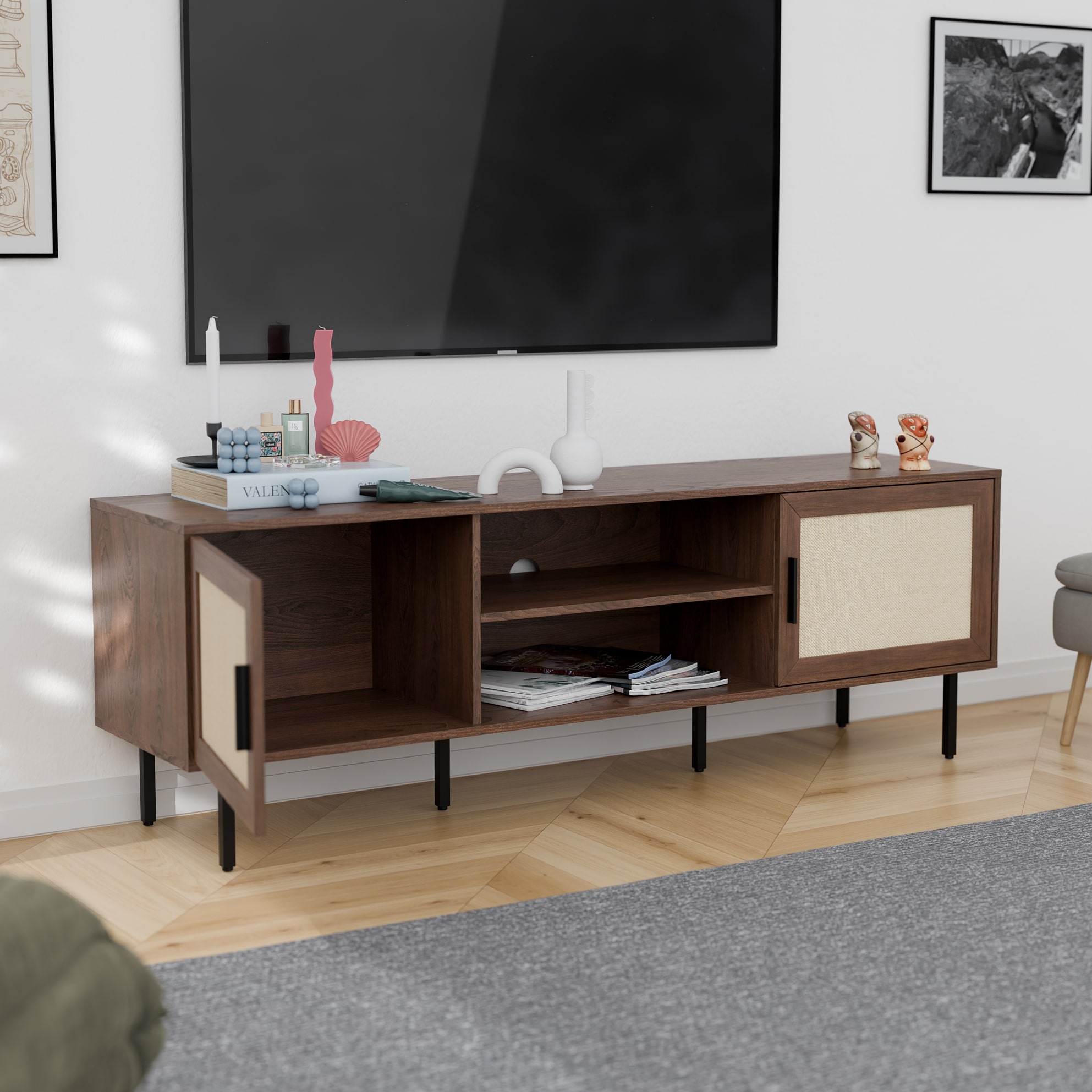 המזנון המעוצב מעניק מראה מודרני ומינימליסטי עם קווים ישרים וגימור אלגנטי עם דלתות בסגנון ראשון מודרני