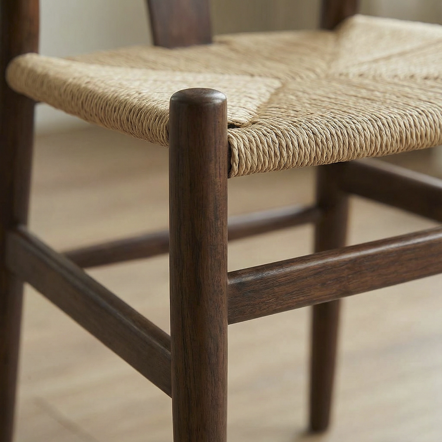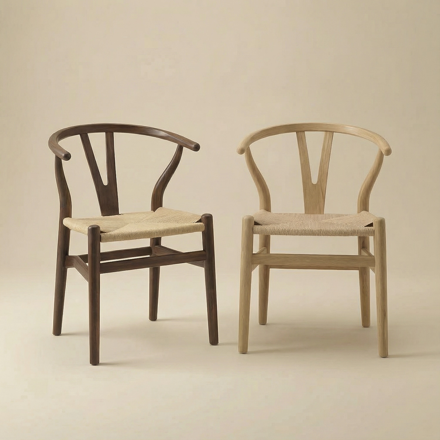 כיסאות בעיצוב על זמני שמשלב עץ בגוונים חמים גב מעוגל ויחודי ומושב נוח לנוחות יומיומית