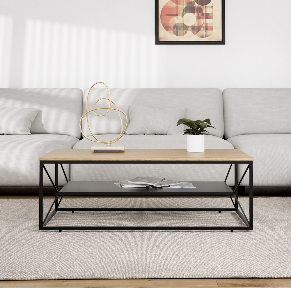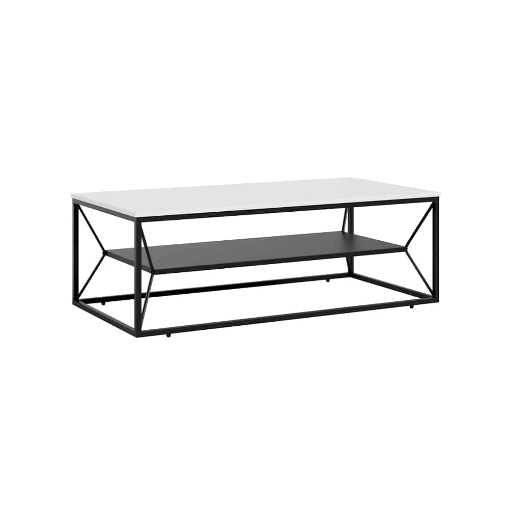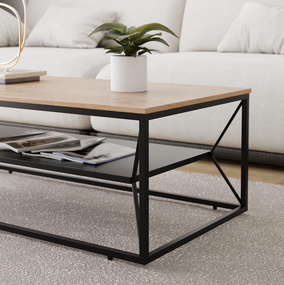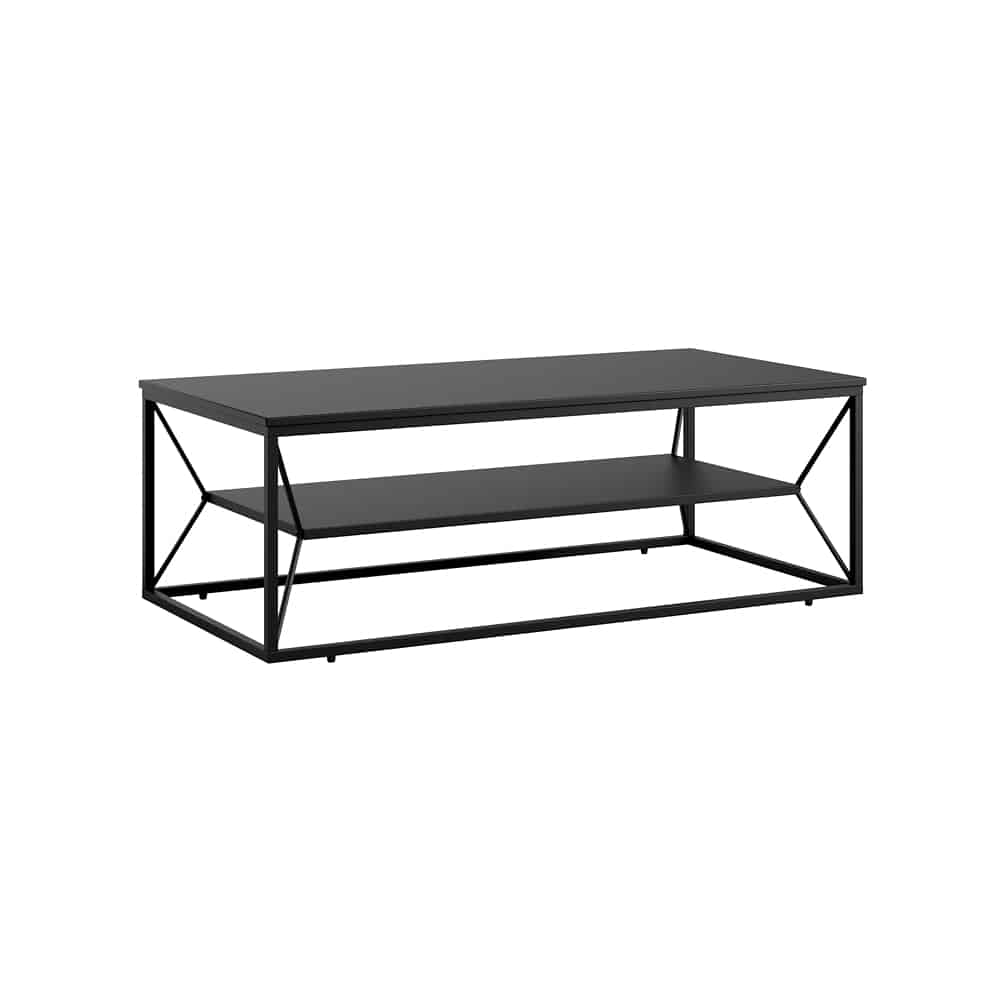 שולחן סלון בעל מדף תחתון מעוצב ורגלי מתכת מושחרות בצביעה בתנור בגימור יוקרתי