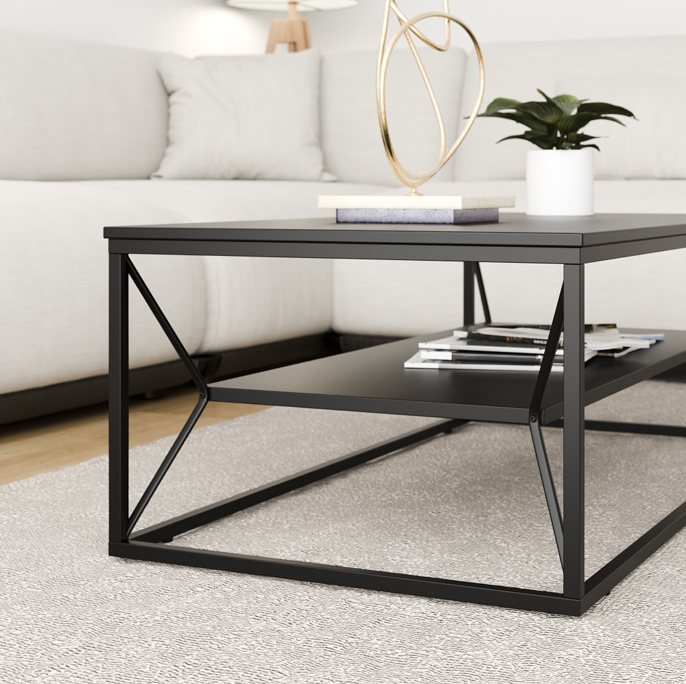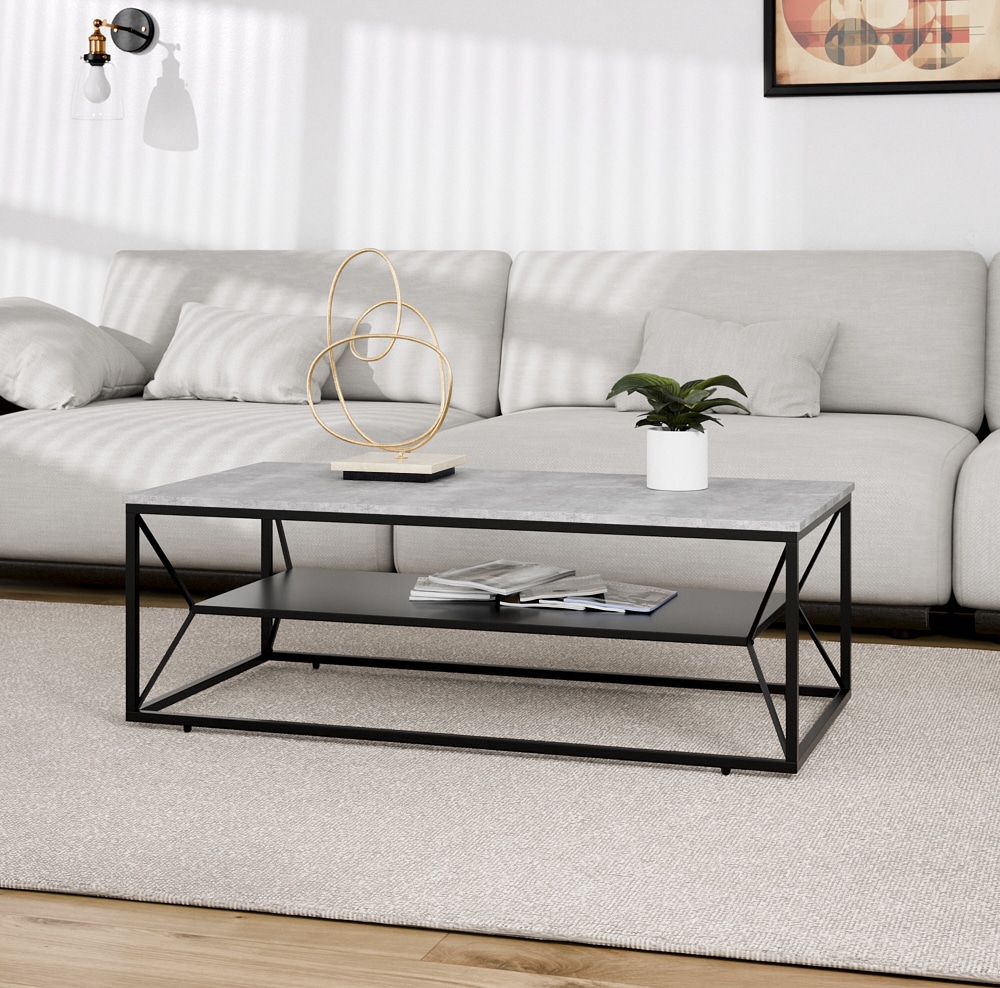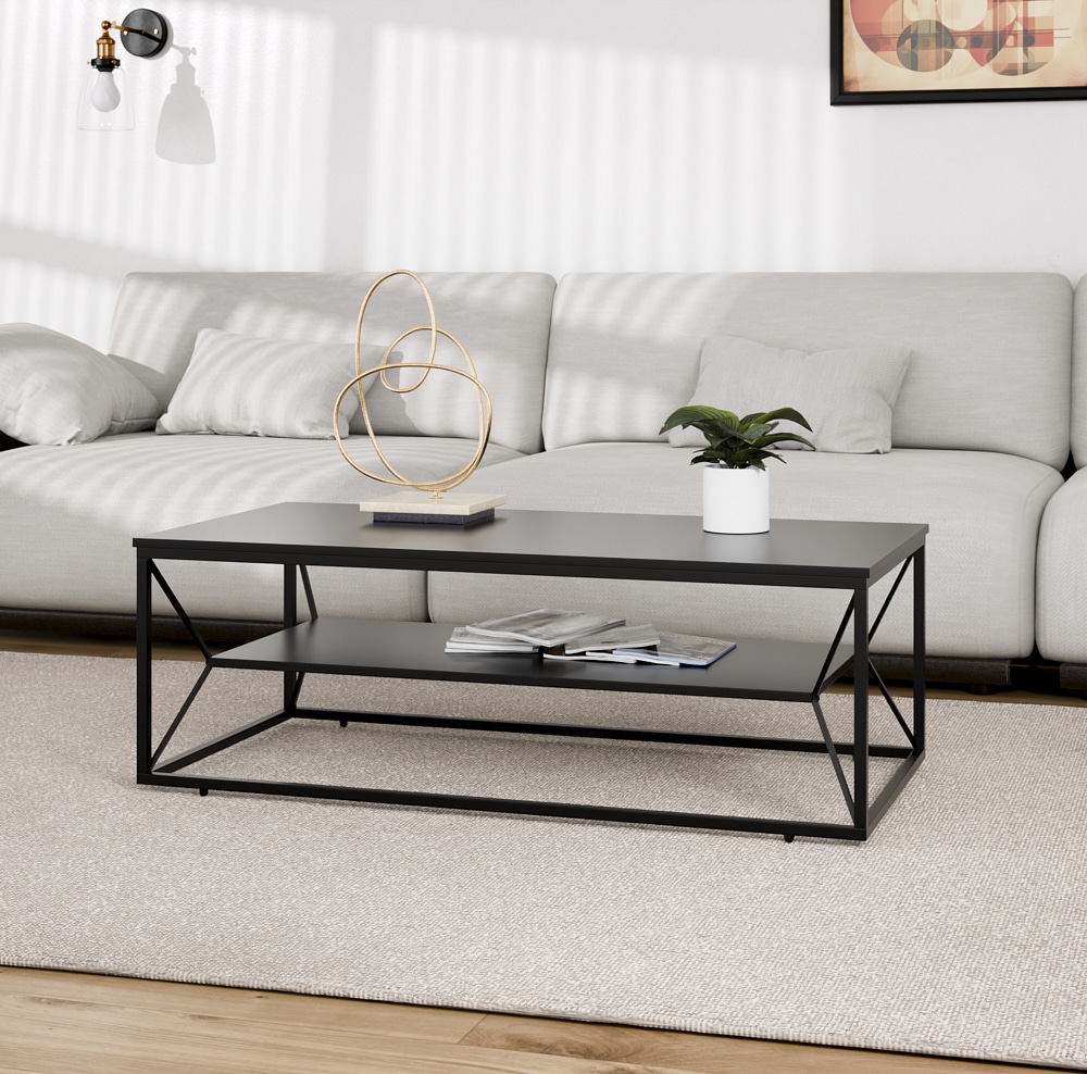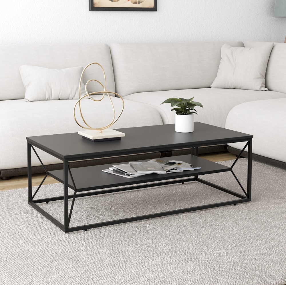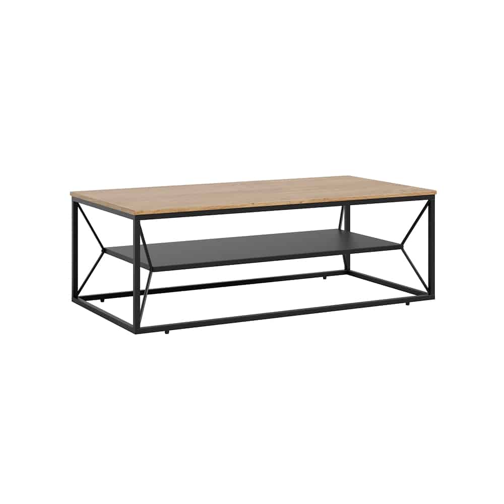 שולחן סלון בעל מדף תחתון מעוצב ורגלי מתכת מושחרות בצביעה בתנור בגימור יוקרתי