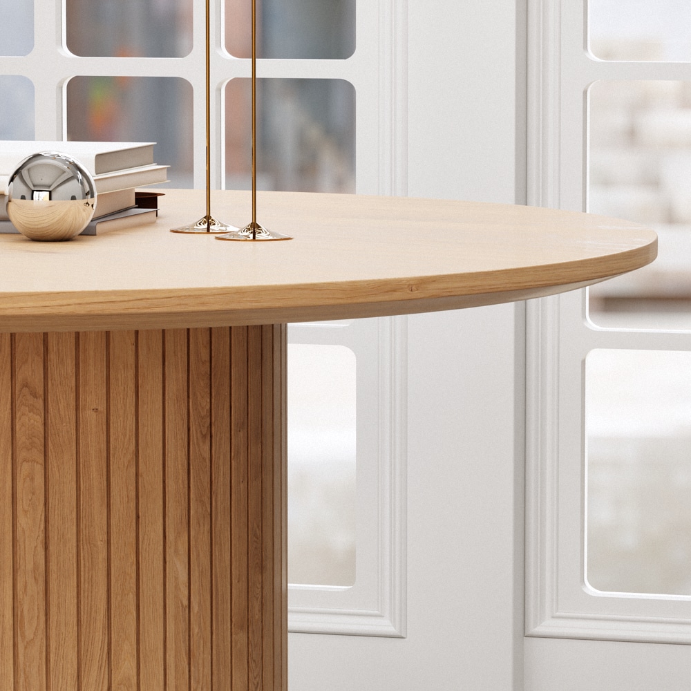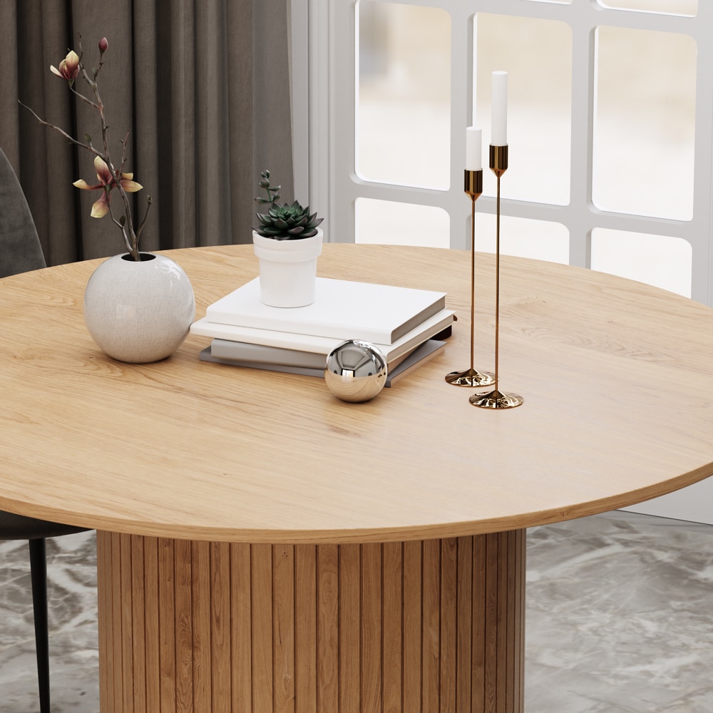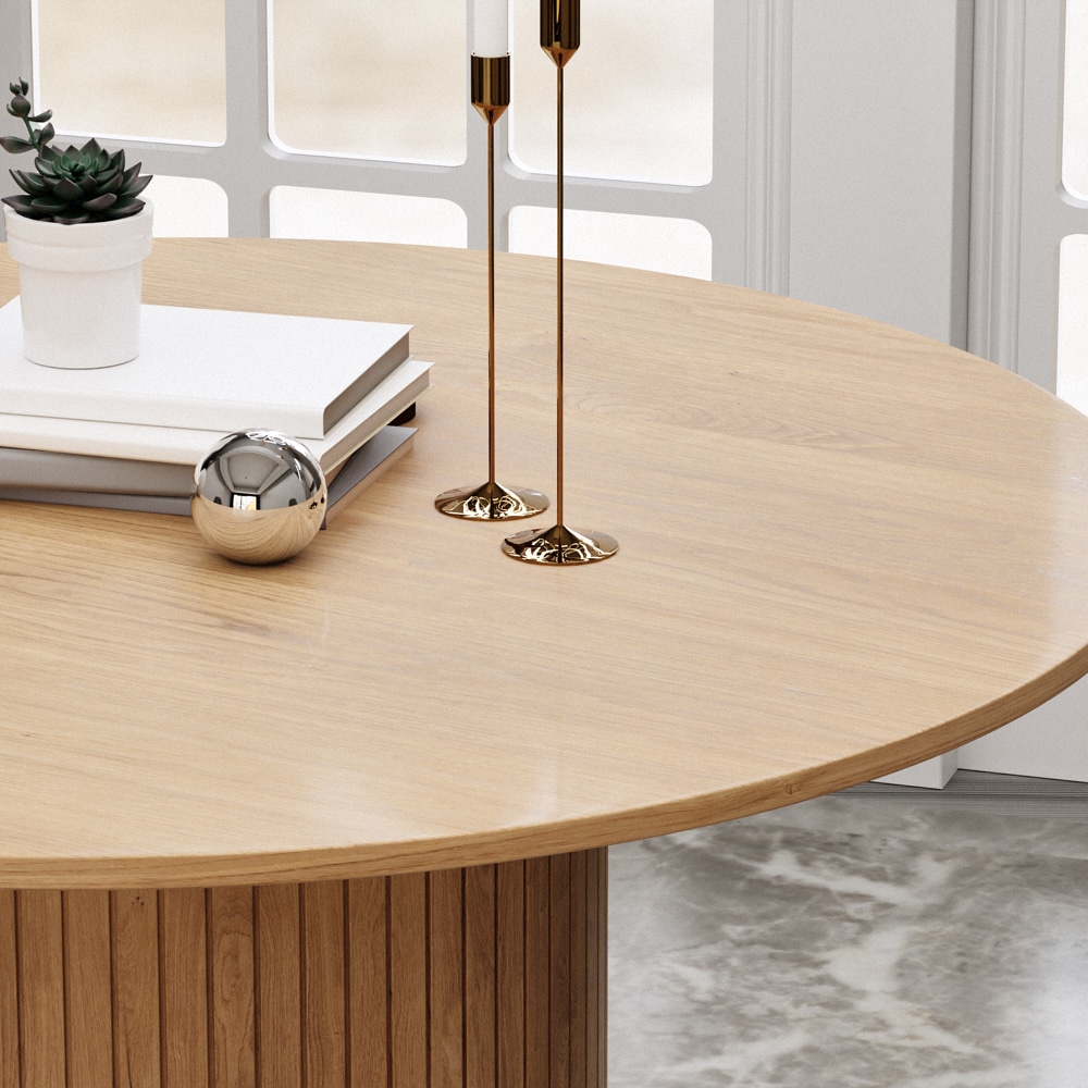 השולחן בעל רגל עגולה רחבה ליציבות מושלמת, המעוצב בצורה אלגנטית שישדרג את פינת האוכל שלכם.