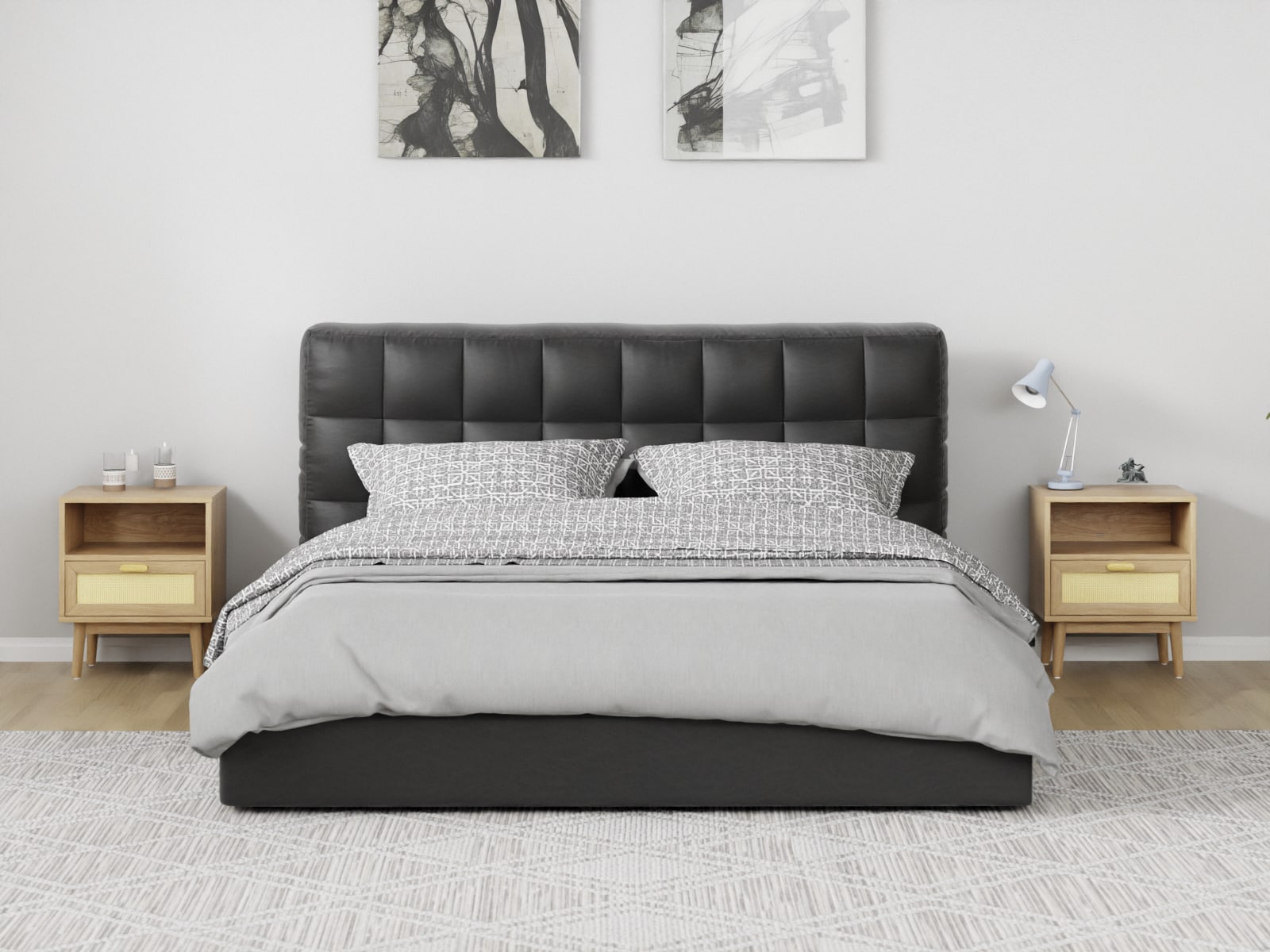 השידה מכילה מגירה בשילוב חזית דמוי ראטן על מסילות לפתיחה נוחה וידית מעוצבת